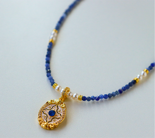 French Vacation Pearl & Stone Necklace – Elegant and Versatile