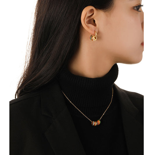 Vintage Matte Enamel Hoop Earrings & Necklace – Elegant and Chic Design